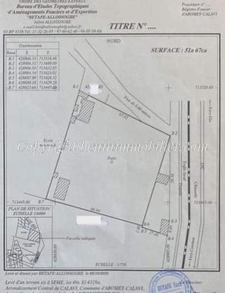 Il est mis en vente un domaine clôturé déjà loti et recasé d'une superficie totale de 5167M² situé en angle de rue au bord du goudron et des pavés à Sèmé non loin de l'ancien emplacement de la Banque Orabank non loin de la Polyclinique Coopérative et de la Pharmacie Le Château à côté de L'Hôtel de Ville / Mairie à Calavi.