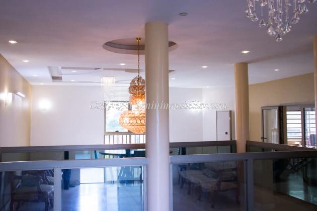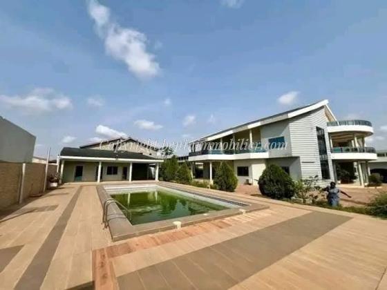 Disponible en vente à Calavi Zopah une très grande villa de 5 chambres, 3 salons, 1 bureau, 1 grand hall, 1 salle de gym, 1 piscine, espace vert, ... sur 4 parcelles ensembles de 2157m² et située non loin du pavé ICC .