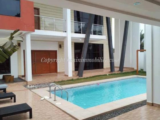 Nous disposons à vendre à calavi ZOCA une villa R+1 de 5 chambres un salon avec piscine et espace vert non loin de l'hôpital de référence "CHIC" et de la FECECAM
